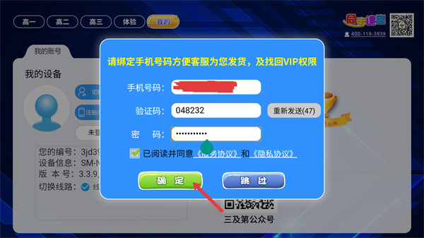 4、填完绑定信息并勾选协议后,点击【确定】按钮,即可完成手机号码绑定,同步获取对应账号权限。