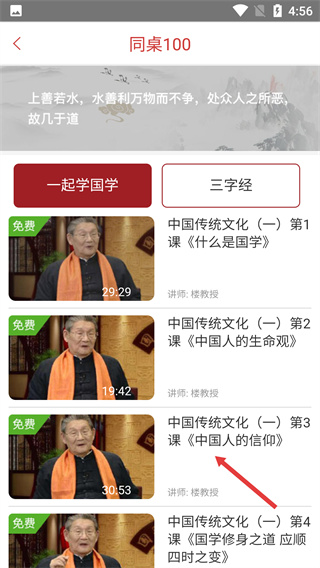 2、进入【国学课堂】页面后,可选择【中国传统文化(一)】系列课程,查看由楼教授主讲的国学相关学习内容。
