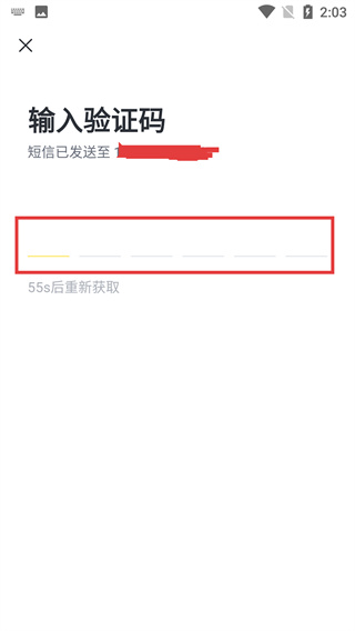 3、进入【输入验证码】页面,在输入框填写收到的验证码。