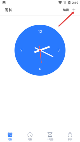 1、进入闹钟界面,点击右上角【+】按钮添加新闹钟。