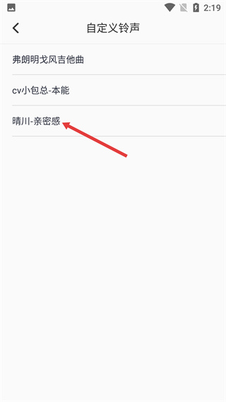4、进入自定义铃声页,选【晴川-亲密感】铃声,选定后应用到对应闹钟。