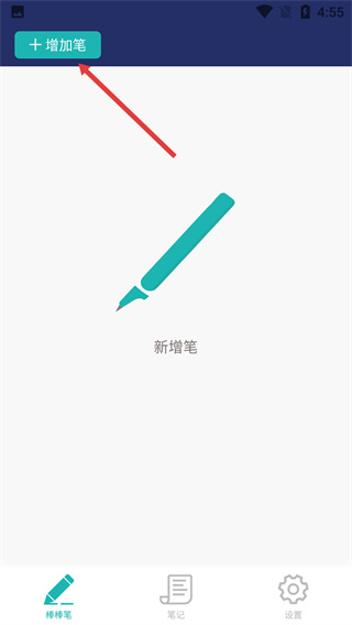 1、在“棒棒笔”页面,点击左上角【增加笔】按钮,可添加新的书写工具。