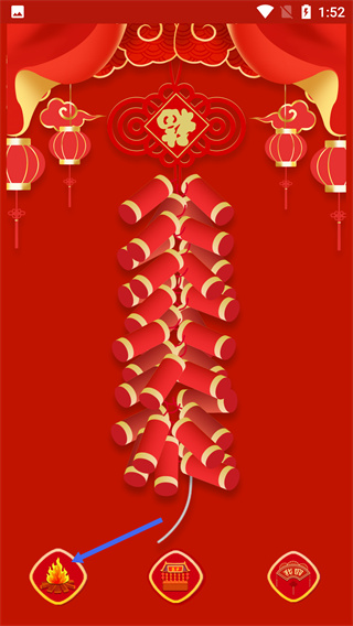 3、选定鞭炮样式后,在对应界面点击底部的火焰按钮,启动鞭炮相关互动流程。