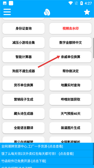 2、滑动功能列表,找到【亲戚单位换算】选项并点击,进入亲戚关系的称呼计算界面。