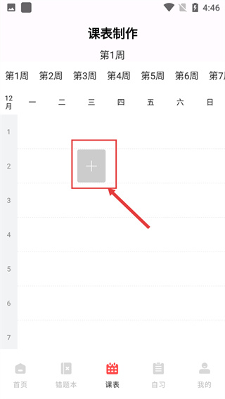3、在课表的目标时间格子内,点击【+】按钮,进入课程信息的添加界面。