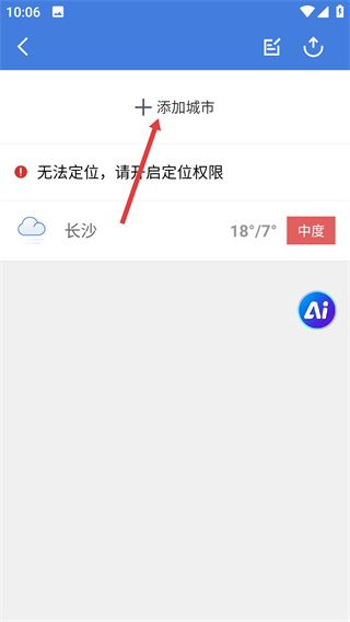 2、点击加号后进入添加城市界面,可开启定位获取当前城市,也能直接通过相关选项添加其他目标城市。