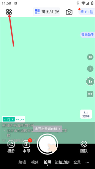 1、进入相机类APP的拍摄界面,点击左上角的功能菜单按钮,展开功能选项面板。