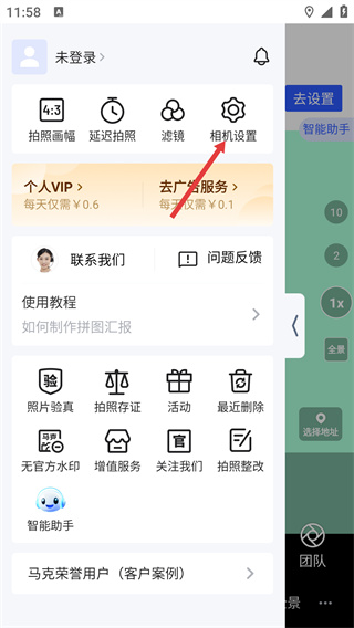 2、在功能选项面板中,找到“相机设置”选项并点击,进入相机的配置页面。
