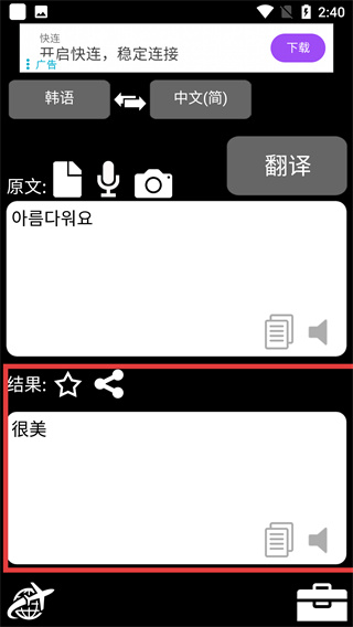 4、界面设计清晰,输入与结果分区呈现,操作简单易上手,搭配多元实用功能满足全场景翻译需求。