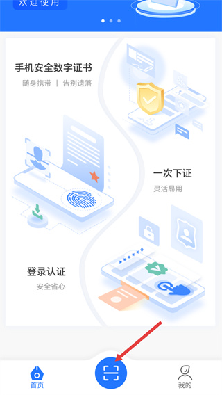 3、回到首页界面,点击底部的扫码功能按钮,进入扫描二维码的操作界面,准备进行服务相关的扫码操作。