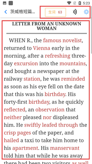 2、先背高频生词再阅读原版书或新闻,搭配生词颜色标注与释义链接,保障流畅无间断的阅读体验。