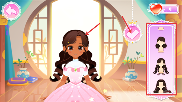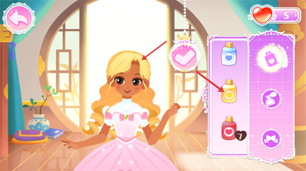 1、点击带有粉色宝石图标的按钮,进入【奇妙百变公主】游戏。