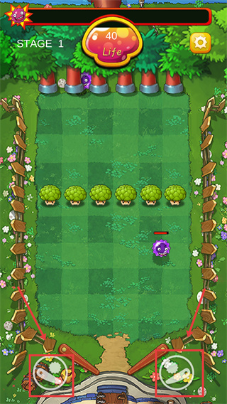 3、当【Life】降至40时,利用界面底部的道具,对移动的【敌人】进行操作,推进关卡进度。