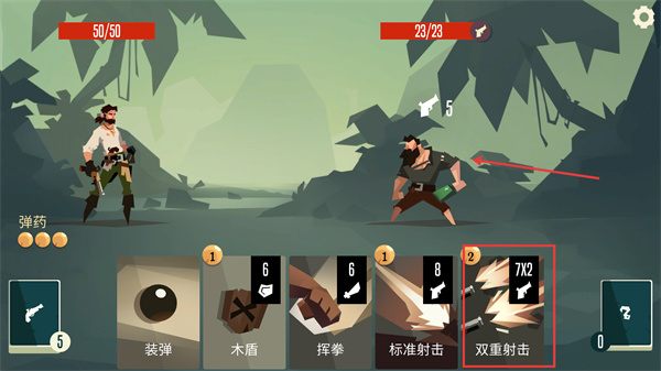 2、战斗中选择【双重射击】卡牌,消耗2点资源触发该技能,可对敌人造成【7X2】的伤害快速压制目标。