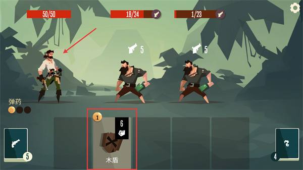 3、敌方数量增加时,使用【木盾】卡牌,消耗1点资源获得6点护盾,提升自身生存能力抵御攻击。