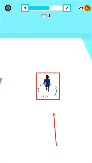 1、操控角色移动时,留意上方进度条与金币数值,持续移动可推进关卡进度。