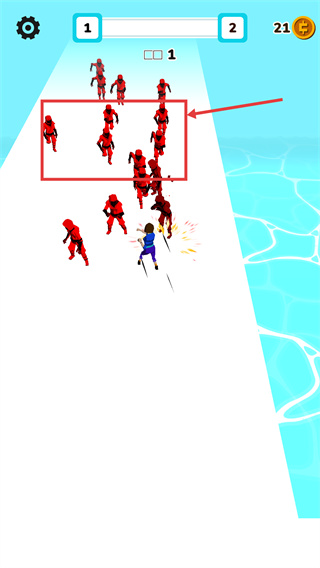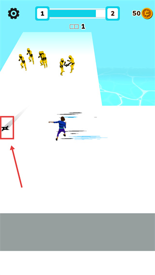 3、战斗中拾取左侧的飞镖类道具,可强化输出能力,更高效地应对后续出现的黄色敌人,推进关卡。