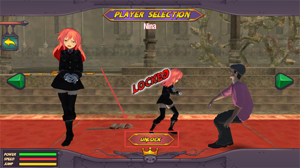 1、在【PLAYER-SELECTION】界面选择可用角色【Nina】,锁定角色需后续解锁,先选当前角色进入战斗。