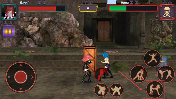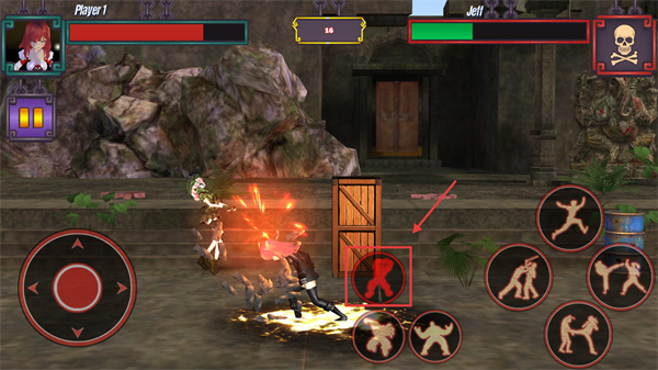 2、战斗中使用右侧的投技类技能,可对近距离敌人造成控制与伤害,配合方向轮盘调整站位提升命中。