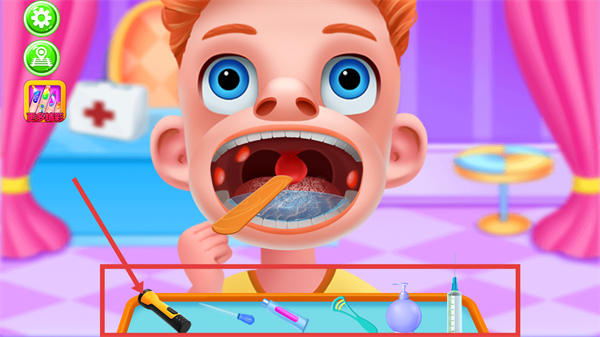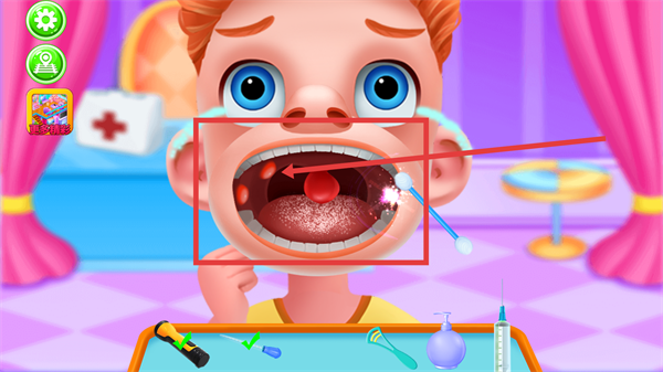 4、提供从左到右的清晰道具使用指引,操作简单易上手,完成诊疗任务后可获得奖励,激发孩子参与热情与成就感。