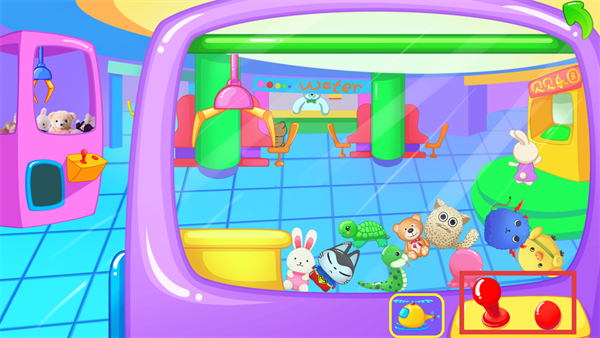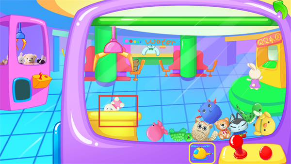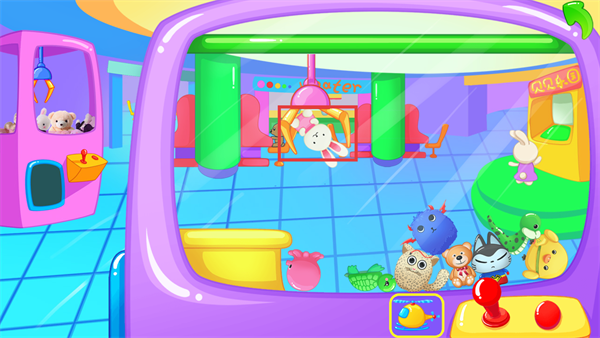 4、将抓取的兔子玩具放入黄色容器中,完成该轮的抓取收集任务。