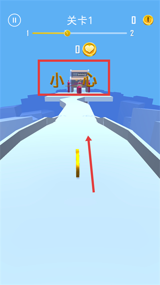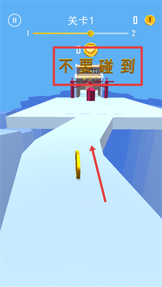 1、进入【关卡1】后,留意界面显示的【小心】提示,操控道具硬币沿路径收集金币,推进当前关卡的进度。
