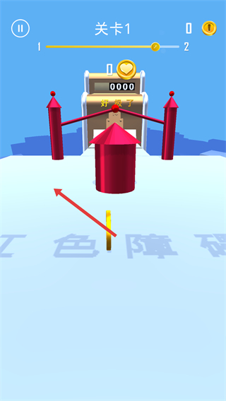 3、在【关卡1】中遇到【红色障碍】时,遵循界面指引避开该障碍,同时收集金币的进度过程。
