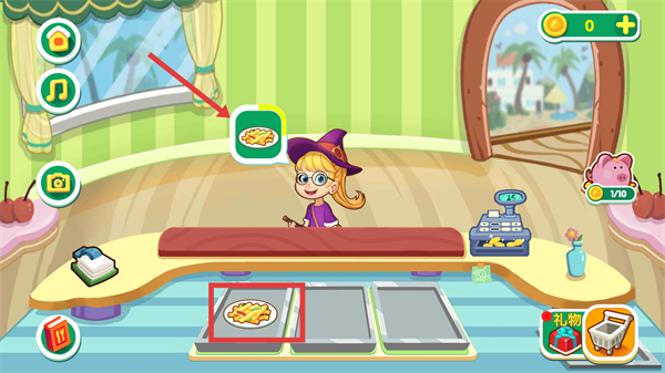 1、在厨房界面,点击上方显示的菜品图标,开启对应菜品的制作流程。