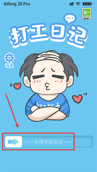 1、进入【打工日记】游戏时,按提示右滑界面中的“右滑开始游戏”按钮,即可进入关卡。