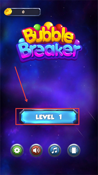 1、进入【Bubble-Breaker】游戏后,点击【LEVEL-1】按钮即可开启第一关的泡泡消除挑战。