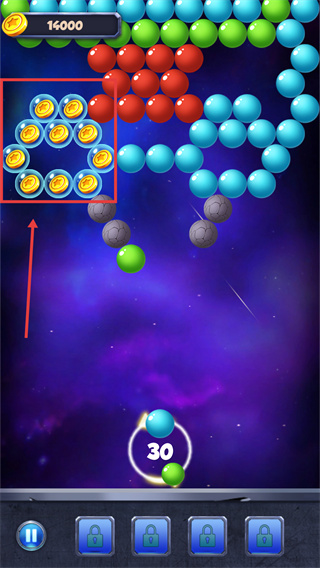 3、遇到【金币-泡泡】区域时,消除后可获取金币提升关卡收益。
