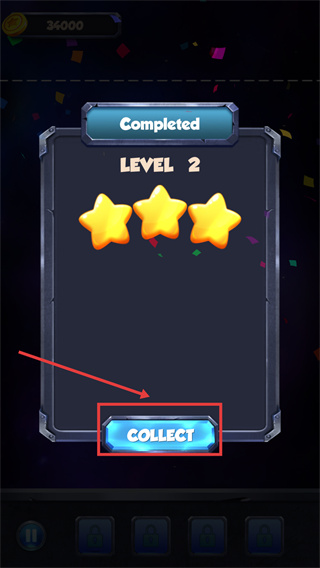 4、关卡通关后点击【COLLECT】按钮,可领取三星奖励,解锁后续关卡继续挑战。
