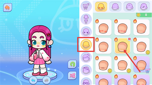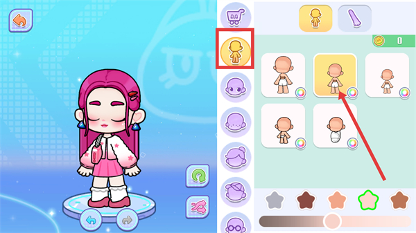 1、进入装扮界面,点击右侧身体模板分类下的对应选项,可更换角色的身体基础样式,开启装扮流程。