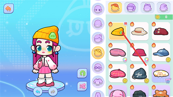 3、在面部装饰分类中,选择角色帽子选项,点击后即可为角色添加帽子装饰,此时可自由选择装扮。