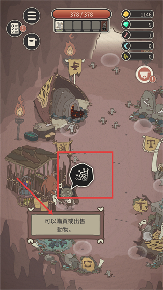 2、点击场景中的【驯兽标识】,进入驯兽界面,可对已捕获的动物进行驯兽或出售操作,获取资源。