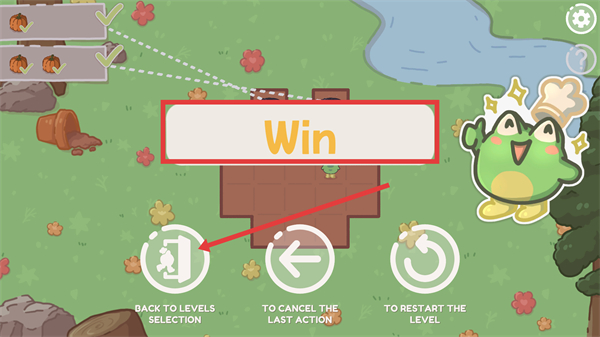 4、通关后会显示提示,可点击返回关卡选择按钮,继续挑战其他关卡。