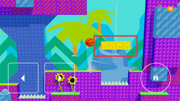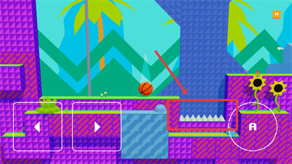 1、操控【篮球】移动,避开【尖刺区域】,借助平台跳跃前进,推进关卡进程。