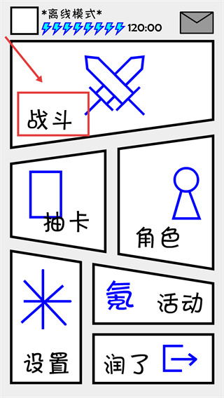 1、进入界面后可通过【战斗】入口开启玩法,同时留意【离线模式】状态,合理规划游戏时间。
