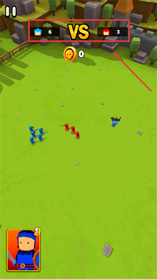 3、战斗时关注上方【6-VS-3】的双方数量差,利用数量优势快速击溃敌方单位以推进进度。