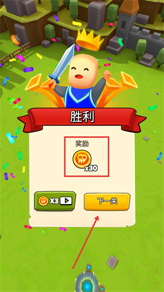 4、通关后会获得【30】金币奖励,点击【下一关】可继续挑战,也能观看广告获取三倍奖励。