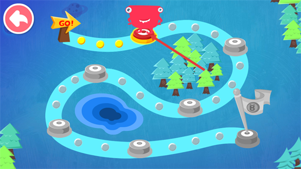 1、操控【红色怪物】沿蓝色路径移动,开始闯关,朝着带目标的终点旗前进,完成关卡目标。