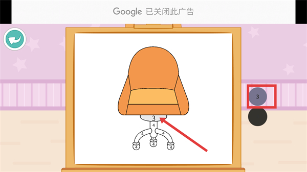 3、在填色关卡中,选择右侧【3】号颜色,为图案里标记【3】的区域填色,完成部分图案。