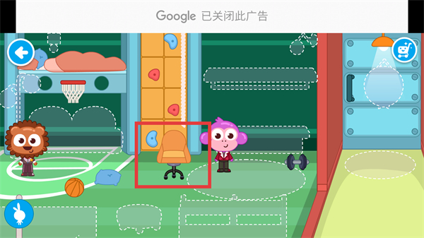 4、进入房间布置的场景,将【椅子】等家具拖动到虚线区域,完成房间装饰与趣味互动。