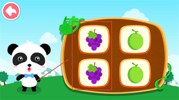 2、点击右侧棕色四宫格中的不同水果图案,如被指示的【哈密瓜】和【葡萄】进行认知学习。