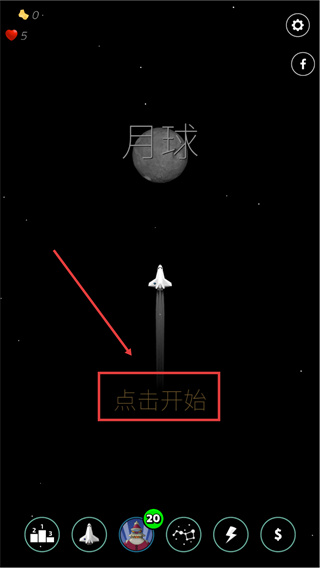 1、在【月球】主题界面中点击【点击开始】,即可启动火箭飞行关卡。