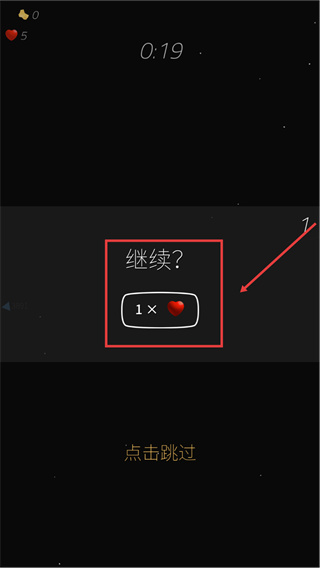 4、关卡失败后会弹出【继续?】提示,消耗【1x-爱心】可复活继续挑战,也可点击跳过重新开始。