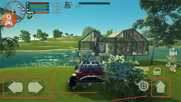 2、通过方向按钮操控移动,靠近建筑或载具,探索场景解锁更多生存相关的设施与资源。