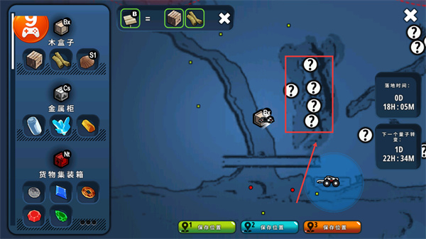 3、在物资界面中,【?】标识对应未知资源,解锁后可获取新物资,同时利用保存位置功能标记关键资源点。