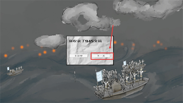 4、通关后收获【945-支箭】,点击【下一关】按钮进入后续关卡,积累资源以应对更复杂的战斗场景。