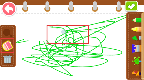 3、使用左侧【橡皮】工具,擦除涂鸦中多余线条,修正画面,培养孩子细致观察与调整能力。